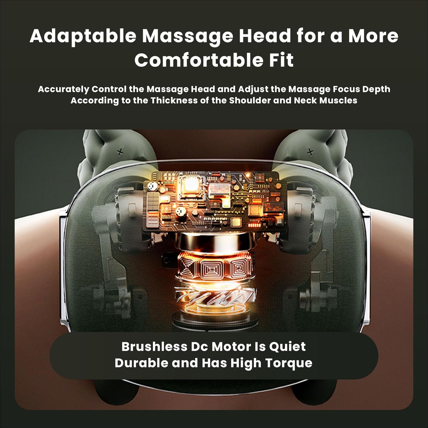 The device integrates dual heating coils that deliver constant warmth without fluctuation. This simulates the sensation of warm palms pressing against your neck and shoulders, promoting blood circulation, muscle relaxation, and faster recovery.