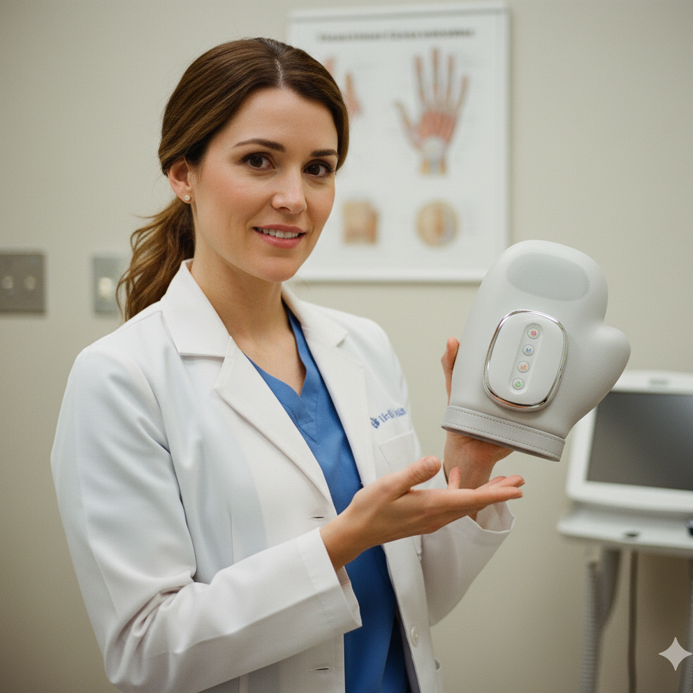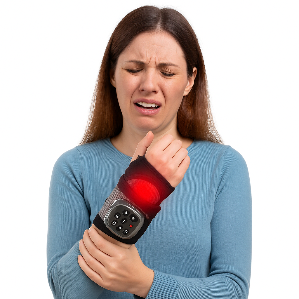 It uses air compression and gentle heat to simulate a real hand massage — easing tension, improving circulation, and reducing stiffness in fingers, palms, and wrists.