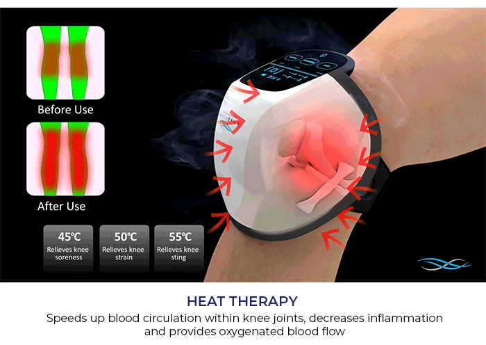 The device combines heat therapy, infrared light, and vibration massage to relieve knee pain, reduce stiffness, and improve joint flexibility – all from the comfort of your home.